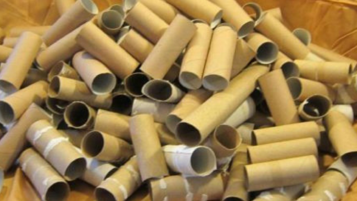 Verwenden Sie die Polyesterbehälter wieder, wenn bestimmte Lebensmittel verkauft werden. Mit weißem Essig gut reinigen und in Pergamentpapier einwickeln. Jetzt können Sie dieses Tablett als Tablett zum Anbieten von Kuchen oder Speisen verwenden. - Toilettenpapierrollen