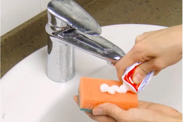 9) Sie können die Wasserhähne zum Glänzen bringen, indem Sie sich mit einem Schwamm und … Zahnpasta ausstatten!
