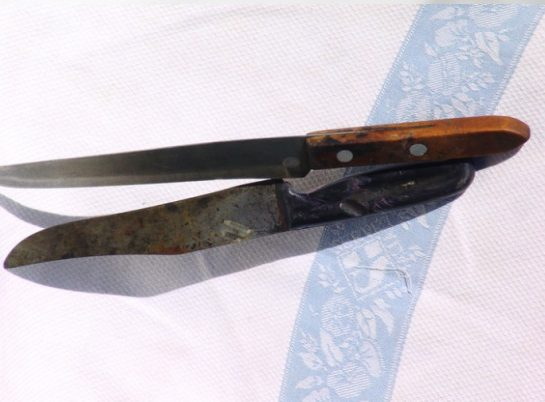Schneiden Sie eine Kartoffel in zwei Hälften und reiben Sie Ihre Klinge damit (achten Sie darauf, dass Sie sich nicht schneiden). Es ist die Stärke, die Wunder bewirkt.
