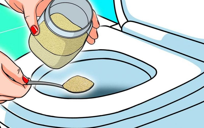 – Gießen Sie einfach eine ganze Packung (10 g) auf den Boden der Schüssel und geben Sie anschließend 250 ml weißen Essig hinzu (außergewöhnliche und originelle Desinfektionsmittel).