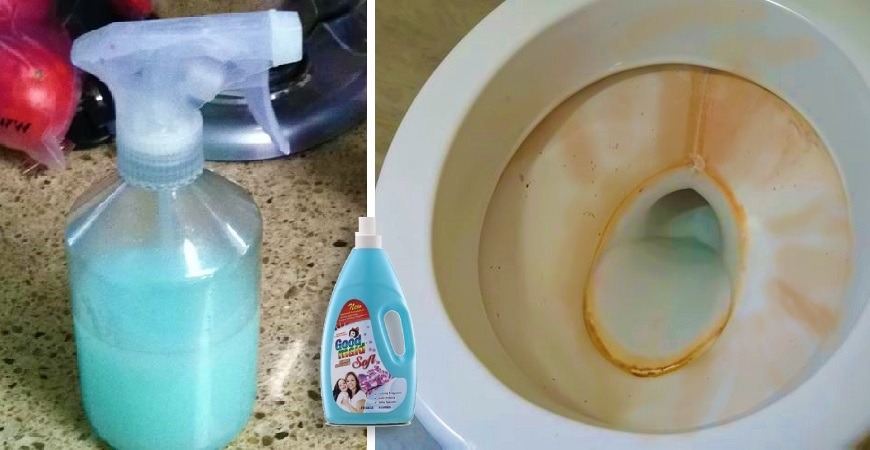 Um diese komplizierten Oberflächen zu behandeln, müssen Sie einen Esslöffel Weichspüler in einen halben Liter Wasser geben und einen Spritzer Alkohol hinzufügen. Mit dieser Mischung können Sie Fliesen, Toiletten, das Waschbecken, in dem Sie sich waschen, die Küchenarbeitsplatte und andere schrubben. Sie werden erstaunt sein, wie schnell sie reinigen und wie effektiv die Mischung ist.