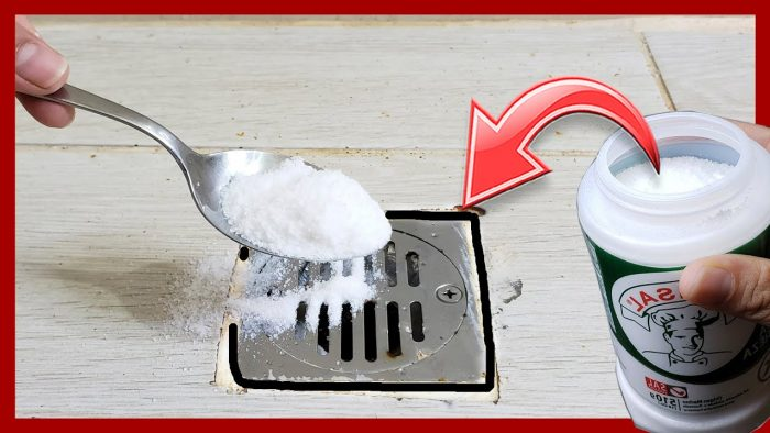 Genau wie Backpulver und Essig kann Salz auch dazu verwendet werden, verstopfte Abflüsse in unseren Waschbecken zu reinigen.