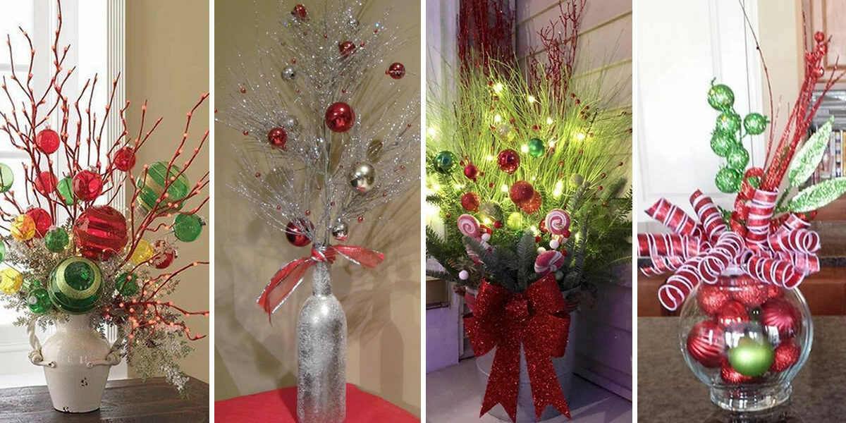 Ein paar Zweige und ein paar bunte Kugeln genügen, um wundervolle Weihnachtsarrangements vorzubereiten, die Sie in jeder Ecke des Hauses platzieren können. Diese Materialien sind sehr leicht zu finden und außerdem sehr günstig (wenn nicht sogar kostenlos).