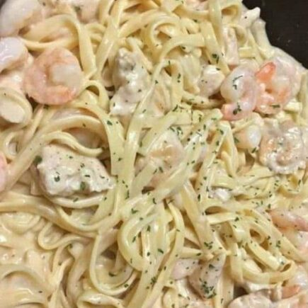 Pasta Alfredo mit Garnelen ist ein klassisches italienisches Gericht aus Nudeln, Garnelen, Sahne und Parmesan. Dieses Gericht ist reichhaltig und cremig, mit einem köstlichen Geschmack und einer glatten Textur.