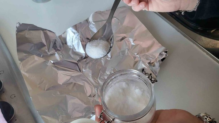 Im Folgenden finden Sie einen ziemlich praktischen Trick, mit dem Sie die Klumpen ein für alle Mal auflösen und den Zucker wieder in seinen ursprünglichen Zustand versetzen können, als wäre er gerade erst aus der Originalverpackung entnommen worden . So gehen Sie vor: Nehmen Sie den Zucker und packen Sie ihn in Alufolie. Beide Elemente werden einige Minuten bei 150° gegart.