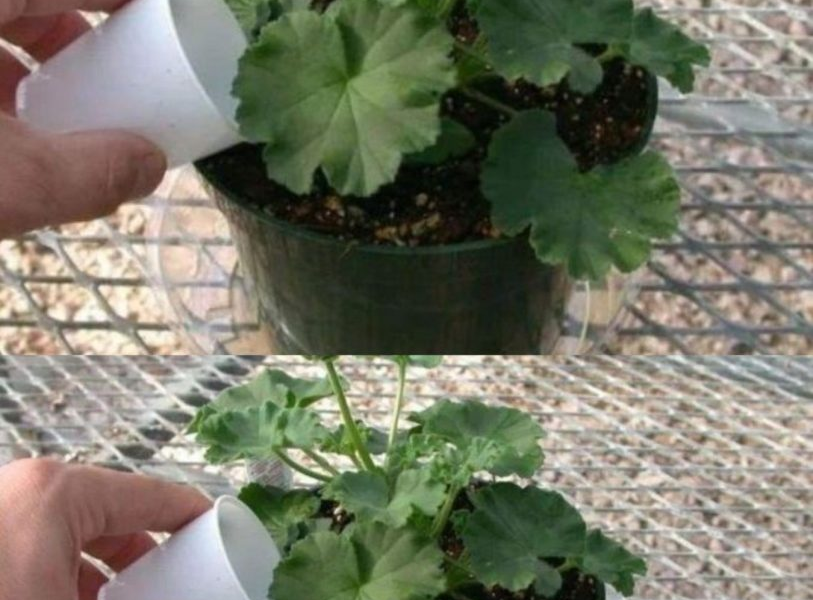 Gut mischen und das Wasser über die Geranienerde gießen.