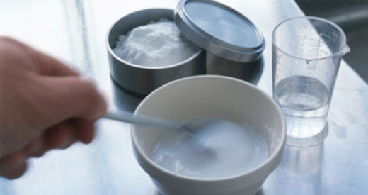 Es ist möglich, einmal täglich und nach der Hauptmahlzeit einen halben Teelöffel Bikarbonat in einem Glas Wasser zu sich zu nehmen.