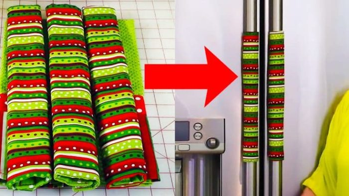 Diese DIY-Kühlschranktürgriffabdeckung von The Sewing Room Channel auf YouTube ist ein sehr nützlicher Gegenstand für die Küche. Als ich aufwuchs, legte meine Mutter immer ein Handtuch um die Türklinke des Kühlschranks, weil wir beim Kochen manchmal bestimmte Zutaten vergessen und unsere Hände vom Kochen schmutzig werden. Ich denke, das ist eine bessere Idee als ein Handtuch, da es in der Mitte des Griffs platziert werden kann und verstellbar ist. Ich werde ein paar machen, weil ich eines für beide Kühlschrankgriffe haben möchte. Außerdem funktioniert dieser Türgriff auch für meinen Backofen. Wenn Sie andere Griffe in der Küche haben, fertigen Sie diese Abdeckungen an, um den Reinigungsaufwand zu reduzieren. Dies kann eine Idee für ein Geschenkset sein, indem andere passende Küchenartikel wie ein Geschirrtuch, ein Topflappen und ein Topflappen kreiert werden.