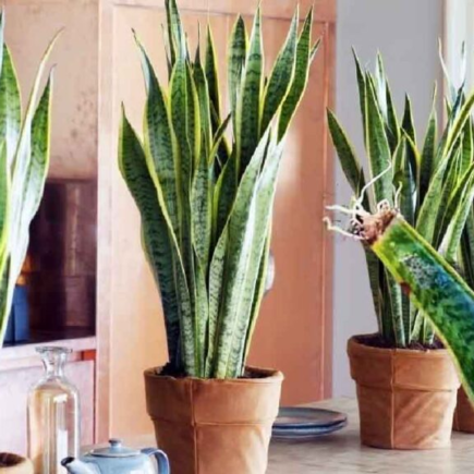 Ob im Topf oder im Garten, die Schwiegermutterzunge ist eine desinfizierende und luftreinigende Pflanze für das Zuhause.