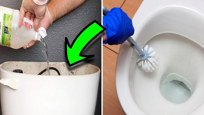 Die Toilette ist einer der Bereiche im Badezimmer, die am anfälligsten für die Ansammlung von Bakterien, Schmutz und Kalk sind. Eine sehr einfache Lösung zum Aufhellen und Desinfizieren ist die Verwendung einer großzügigen Menge weißen Essigs.
