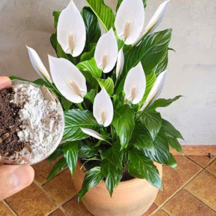 Um die Mischung zuzubereiten, mischen Sie Knochenmehl und Holzkohle im Verhältnis 1:1. Diese Mischung kann direkt auf die  Erde  rund um die Basis der Friedenslilie aufgetragen oder zur Bewässerung mit Wasser hinzugefügt werden.