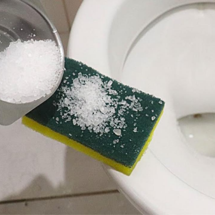 Mit dem Schwamm und grobem Salz riecht das Badezimmer gut: die natürliche Methode
