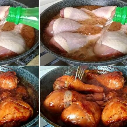 - Hühnchen hinzufügen und mit Getränken aufgießen.