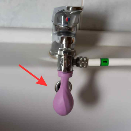 Stecken Sie einen Luftballon auf den Wasserhahn