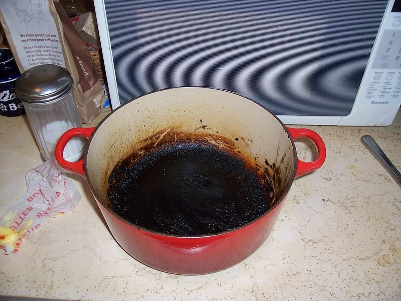 1.) Eingeschmolzene Töpfe mit Seife sauber machen