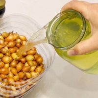 Führen Sie morgens eine Massage der Schilddrüse durch und folgen Sie dabei Rotationsbewegungen. Gehen Sie schlafen, ohne Ihren Hals auszuspülen. Die Eigenschaften der Zwiebel stimulieren die Drüsen.