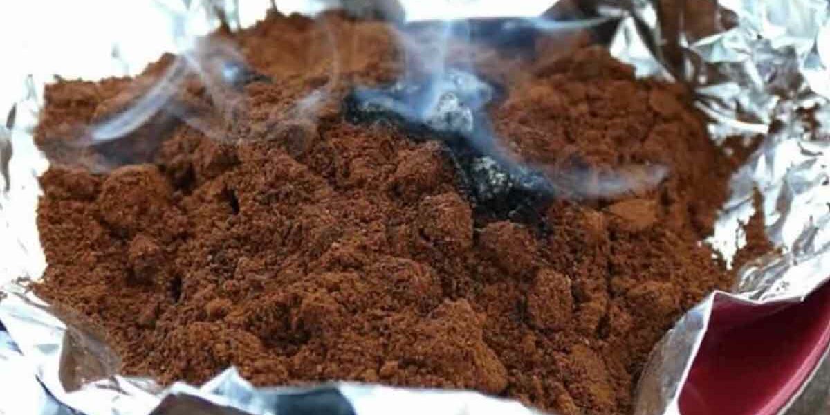 Werfen Sie die Rückstände der Kaffeezubereitung nicht weg.  Tatsächlich kann dieses Pulver, Kaffeesatz genannt, in der Sonne getrocknet und in einen Behälter gegeben werden, auf dessen Boden Sie zuvor ein Blatt Aluminiumfolie gelegt haben.