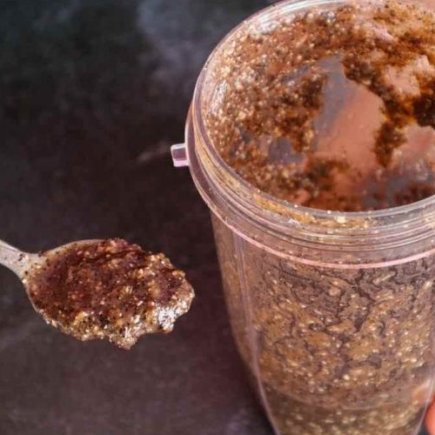 Zuerst müssen Sie die Eierschalen zusammen mit Bananenschalen und Kaffeesatz in den Behälter eines Mixers geben und etwas Wasser aufgießen, um alles weicher zu machen.