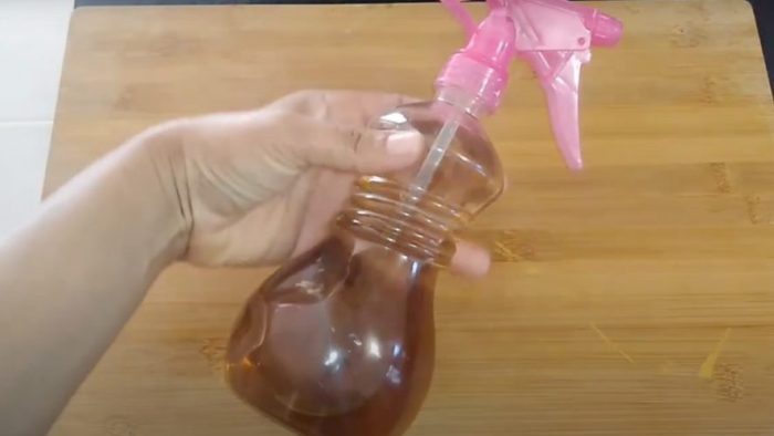 Sobald das Wasser kocht , Lorbeerblätter und Nelken hineingießen . Lassen Sie alles einige Minuten kochen , damit die Zutaten die nützlichen Substanzen freisetzen , die sie charakterisieren. Nehmen Sie dann die Pfanne vom Herd und lassen Sie sie abkühlen . Nach einigen Minuten können Sie die erhaltene Flüssigkeit in eine Flasche mit Sprühzerstäuber füllen .
