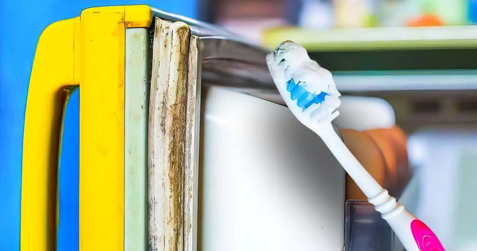 Geben Sie etwas Zahnpasta auf die Zahnbürste und beginnen Sie damit, alle Teile des Gelenks zu schrubben. Eine Viertelstunde einwirken lassen und dann ausspülen, um alle schwarzen Flecken zu entfernen. Mit einem in weißem Essig getränkten Schwamm reinigen. Anschließend mit einem sauberen Tuch trocknen und die Kühlschranktür erst schließen, wenn die Dichtung trocken und sauber ist.