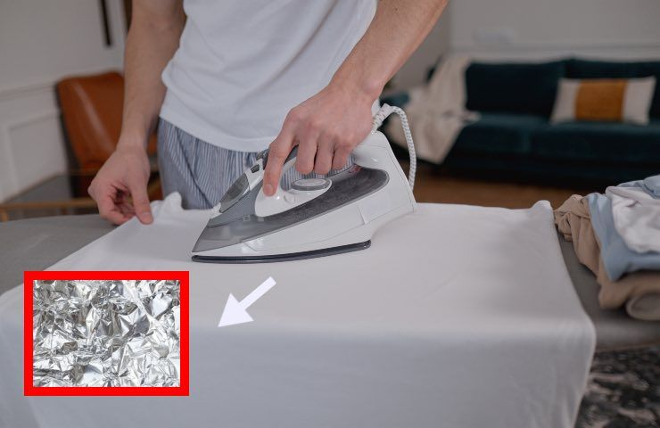 Aluminiumfolie auf dem Bügelbrett – TikTok (Quelle: andrelifehack) – arancionergia.it
