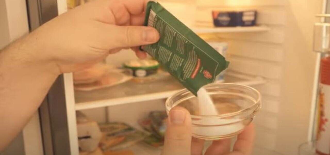 Selbst zum Schutz gekaufter Lebensmittel gibt es keine einfachere Geste , als eine Schüssel Backpulver in den Kühlschrank zu stellen. Schauen Sie sich die Bildfolge an und probieren Sie es selbst aus. Die Methode trägt dazu bei, unerwünschte Gerüche zu beseitigen und eine frischere, angenehmere Umgebung im Kühlschrank zu schaffen. Nehmen Sie eine kleine Schüssel oder einen offenen Behälter und gießen Sie 25–30 Gramm Backpulver in die Schüssel. Die Menge reicht für die meisten Kühlschränke, egal ob klein oder groß. Stelle