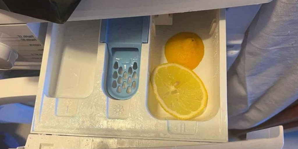 Machen Sie es wie alle Hausfrauen und schneiden Sie 2 Zitronenscheiben in das Fach der Waschmaschine