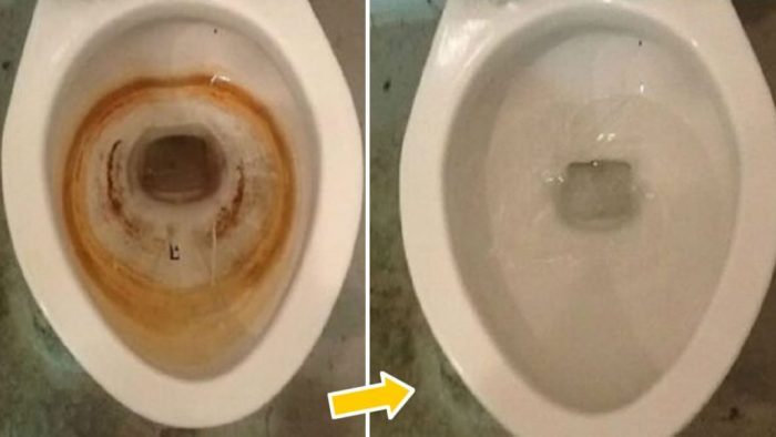 Lassen Sie es 20 bis 30 Minuten einwirken, schrubben Sie es dann gründlich mit einer Zahnbürste oder einem Schwamm und spülen Sie es aus. Zum Schluss spülen Sie die Toilette. Weißer Essig wirkt nicht nur desinfizierend, sondern ist auch sehr wirksam gegen dunkle Flecken.