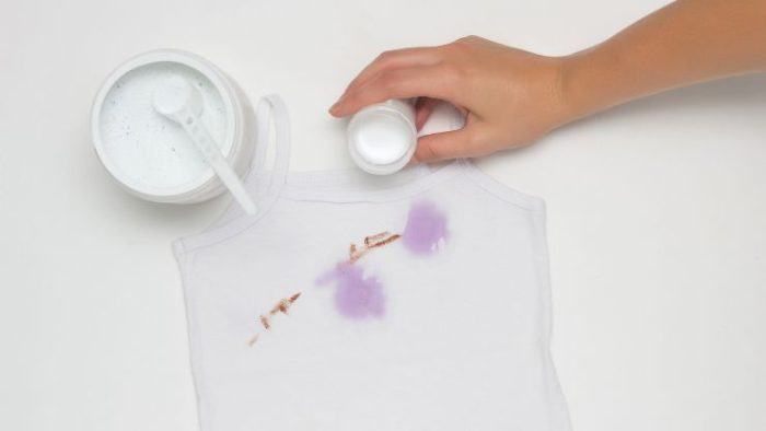 Backpulver und Wasserstoffperoxid sind natürliche Bleichmittel. Wenn Sie diesen Fleckenentferner daher auf dunkler Kleidung verwenden, testen Sie ihn zunächst an einer kleinen Stelle.