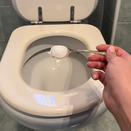 Nachdem man die Handschuhe angezogen hat, trinkt man etwas Wasser, dann eine  Tasse Essig  ,  3 Löffel voll Backpulver  und zum Schluss einen Löffel  Salz  . Es empfiehlt sich, die dünne Variante zu verwenden, da diese schneller schmilzt. Sobald dies erledigt ist, vermischen Sie alles ohne den Essig, verteilen die Mischung dann direkt in der Toilettenschüssel und auf allen  Badezimmeroberflächen und lassen sie mindestens 10 Minuten einwirken.