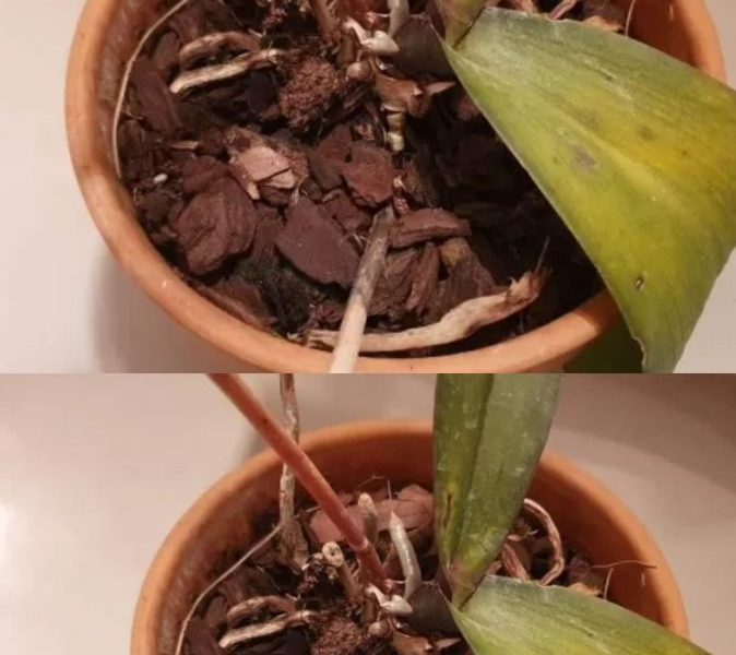 Wenn die Stängel keinen Aufschluss geben, sollten Sie sich die Wurzeln ansehen: Wenn sie sehr hell und geschwollen sind, sind sie gesund, wenn sie braun und matschig sind, sind sie verrottet und können nicht mehr gerettet werden, da sie ihre Fähigkeit verloren haben, Wasser und Nährstoffe aufzunehmen.