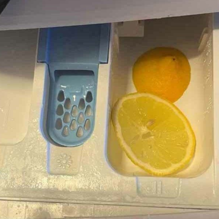 Machen Sie es wie alle Hausfrauen und schneiden Sie 2 Zitronenscheiben in das Fach der Waschmaschine