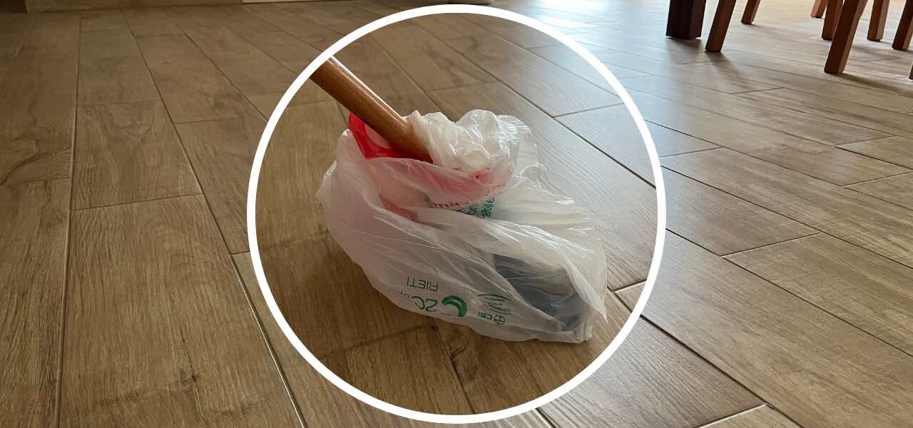Plastiktüte auf dem Besen – die unglaubliche Methode