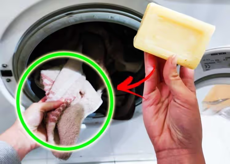 Befeuchten Sie  das Handtuch zunächst mit lauwarmem Wasser , wringen Sie es dann gut aus, entfernen Sie den Großteil des überschüssigen Wassers und reiben Sie die  Marseiller Seife kräftig  auf beiden Seiten des Handtuchs ein, bis sie gut in das Handtuch eindringt.