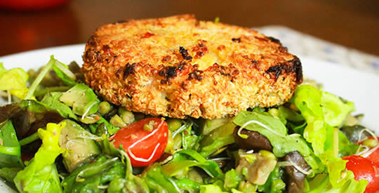 Anschließend die Burger formen und dabei mehr Mehl verwenden, damit sie nicht zusammenkleben. In einer Pfanne, mit etwas Öl oder im Ofen garen.