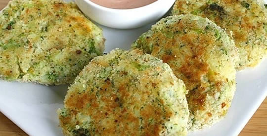 Zutaten für Brokkoli-Kartoffel-Burger : 5 oder 6 mittelgroße Kartoffeln, 1 mittelgroßer Brokkoli (ohne Stiel), 40 Gramm geriebener Parmesan, 100 Gramm Semmelbrösel, 2 geschlagene Eier, 1 gemahlene Knoblauchzehe, Salz und schwarzer Pfeffer.