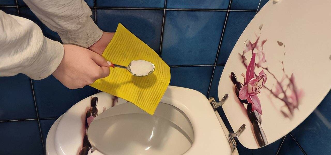 Bevor Sie das von Ihnen gekaufte Produkt zum Reinigen der Toiletten verwenden, müssen Sie diese mit Toilettenpapier abwischen. Geben Sie unmittelbar danach einen Löffel Natriumcarbonat, möglichst umweltfreundlich und vielseitig einsetzbar, in die Toilette.