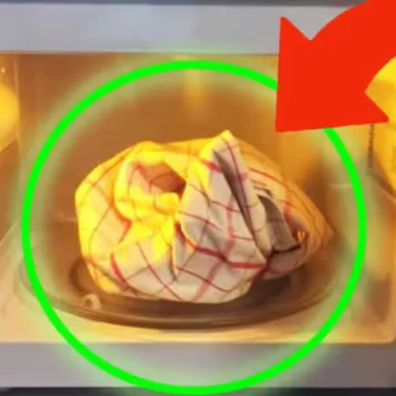 4. Nehmen Sie  den Beutel mit einer  Zange aus der Mikrowelle . Sie können einige Sekunden warten, bis der Stoff etwas abgekühlt ist, bevor Sie ihn aus der Tasche nehmen.