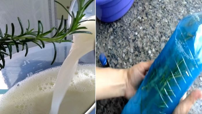 Geben Sie die Rosmarinzweige in eine 2-Liter-Plastikflasche, gießen Sie die zuvor zubereitete Mischung hinein, fügen Sie die Farbe hinzu und lassen Sie sie 24 Stunden lang ruhen. Nach dieser Zeit ist Ihr Desinfektionsmittel gebrauchsfertig.