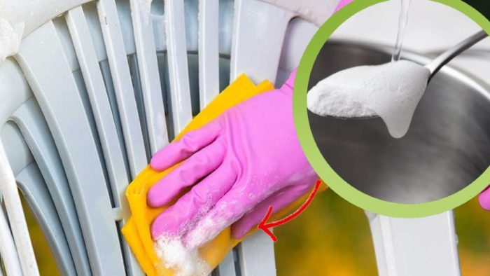 Backpulverpaste: Die erste Lösung besteht darin, zwei Esslöffel Backpulver in eine Schüssel zu geben und nach und nach Wasser hinzuzufügen, bis eine dicke Creme entsteht. Auf die geschwärzte Stelle auftragen und anschließend kräftig mit einer alten Zahnbürste verreiben. Anschließend eine Stunde ruhen lassen. Nach einiger Zeit ausspülen und Sie werden sehen, was für ein hervorragendes Ergebnis!
