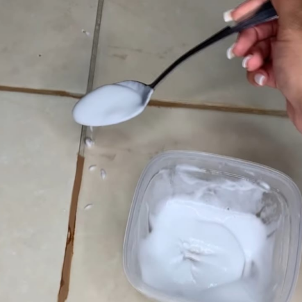 Der erste Schritt? Nehmen Sie einen Plastikbehälter und geben Sie 3 Esslöffel Backpulver hinein. Fügen Sie anschließend einen Löffel Flüssigseife und einen Löffel Zahnpasta hinzu .