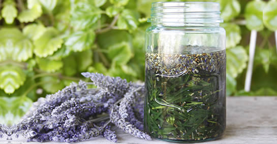 Trennen Sie die Blüten von den Stielen und pürieren oder zerdrücken Sie sie dann, um die Freisetzung des ätherischen Öls zu erleichtern. Gießen Sie die Blumen in ein Glas und bedecken Sie es mit Pflanzenöl.