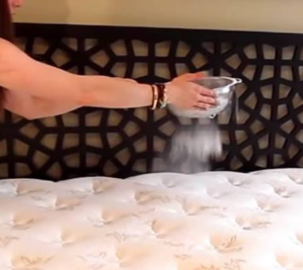 Bestäuben Sie die Matratze mit Backpulver, lassen Sie sie 30 Minuten einwirken und entfernen Sie sie dann mit dem Staubsauger. Backpulver hilft, schlechte Gerüche zu beseitigen.