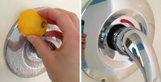 Zitrone . Es ist einer der großen Verbündeten der häuslichen Reinigung. Schneiden Sie eine Zitrone in zwei Hälften und reiben Sie die Innenseite auf dem Kalkstein. Es ist ein schneller und effektiver Trick.