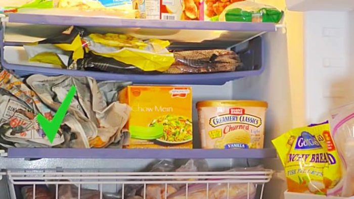 In diesem tollen Video-Tutorial zum Entfernen von Kühlschrankgerüchen von „Get My Tips“ auf YouTube erfahren Sie, wie Sie dafür sorgen, dass Ihr Kühlschrank immer frisch riecht, egal, was Sie hineinstellen. Alles, was Sie tun müssen, ist, etwas Zeitungspapier aufzurühren und es dann in die Fächer im Kühlschrank zu legen.