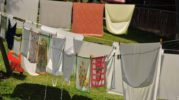 Sammeln Sie die Kleidung nach dem Trocknen ein und falten Sie sie. Lassen Sie sie nicht zu lange hängen.
