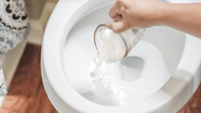Gießen Sie 3/4 Tasse Backpulver in die Toilettenschüssel.