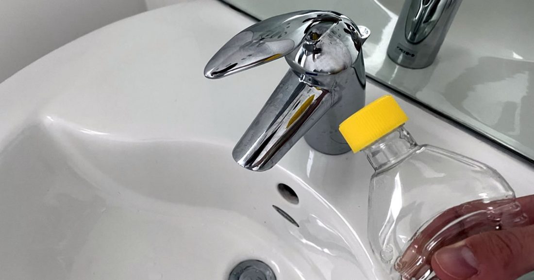 Verwenden Sie diese Lösung, um die gesamte Oberfläche der Spüle zu reinigen. Neben der gründlichen Reinigung hat dieses Mittel auch eine aufhellende Wirkung, die Ihr Waschbecken wieder wie neu aussehen lässt.