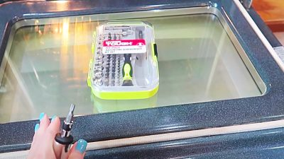 In diesem großartigen Video-Tutorial zur Ofentürreinigung von Andrea Jean Cleaning auf YouTube erfahren Sie, wie Sie die Ofentürzwischenräume in nur wenigen einfachen Schritten reinigen. Sie beginnen damit, die Türteile zu trennen. Das ist viel einfacher als Sie denken.