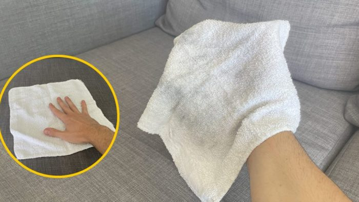Achtung: Die oben beschriebene Methode kann nur auf Sofas und Sessel aus Stoff oder Mikrofaser angewendet werden, nicht auf Leder.